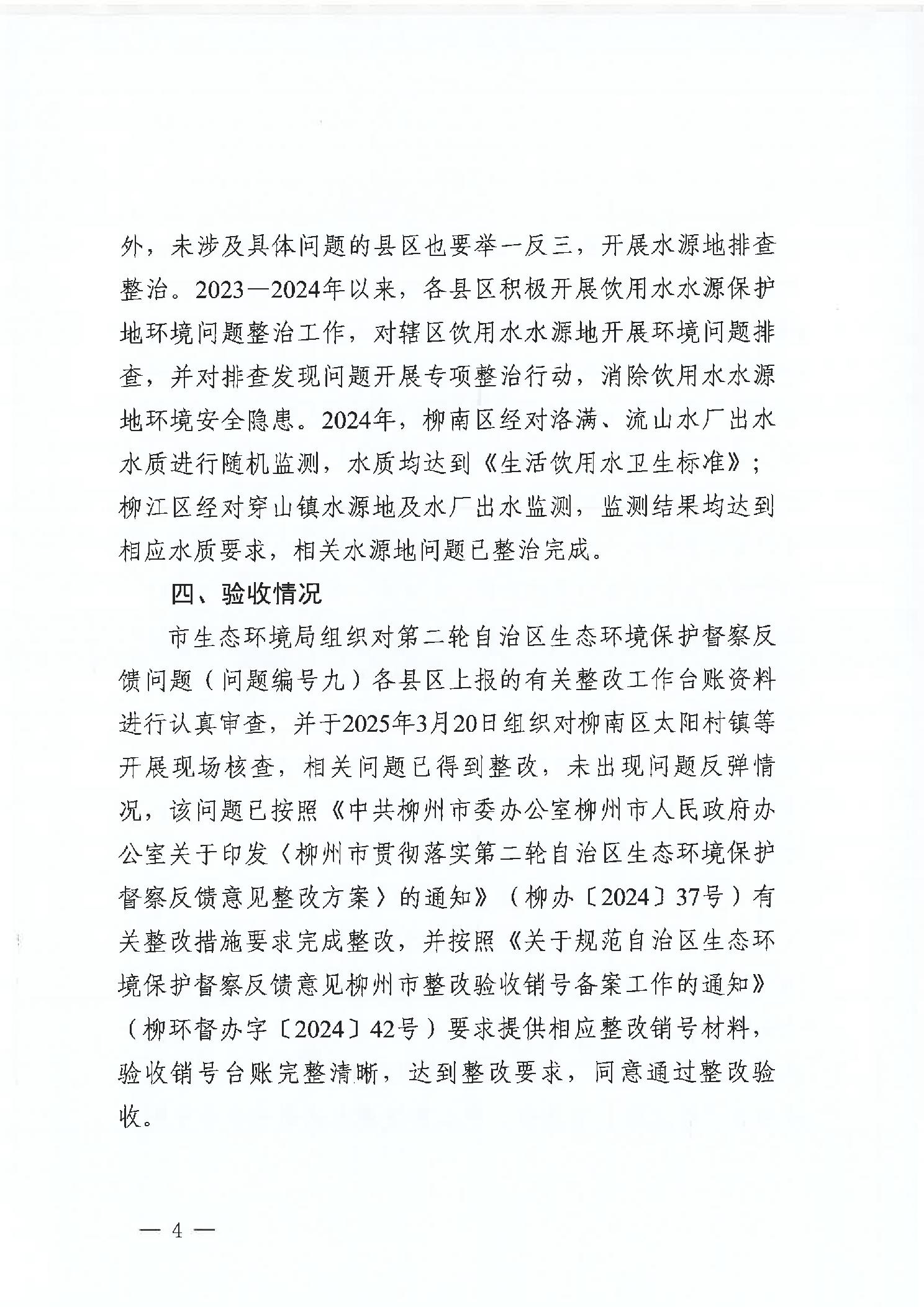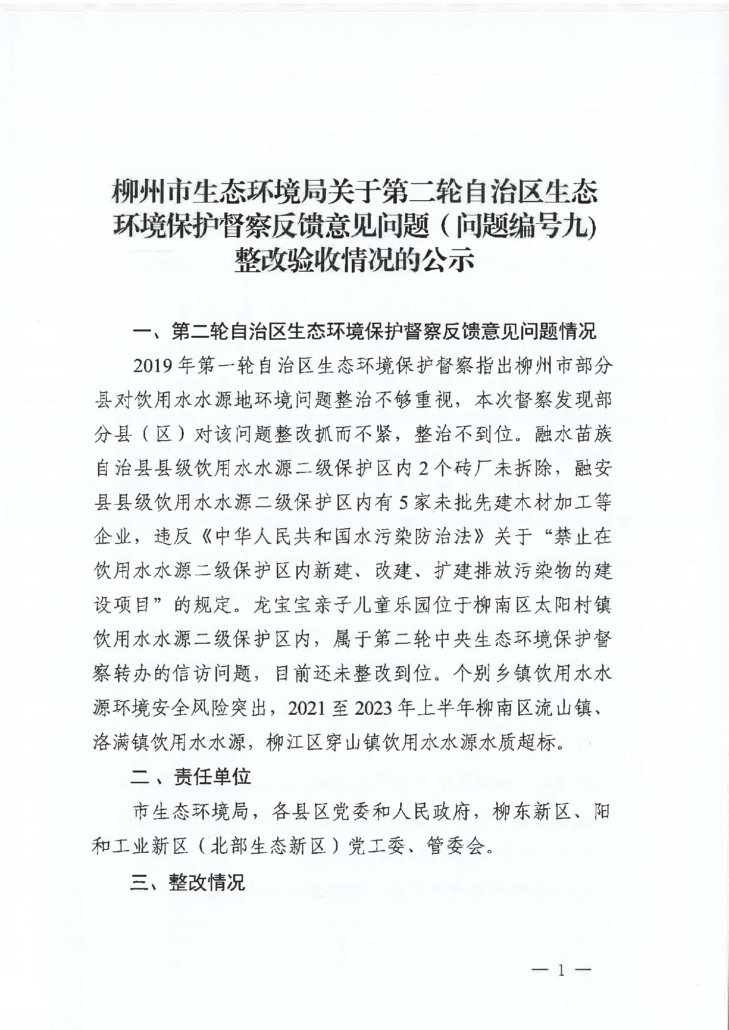 柳州市生态环境局关于第二轮自治区生态 环境保护督察反馈意见问题(问题编号九) 整改验收情况的公示
