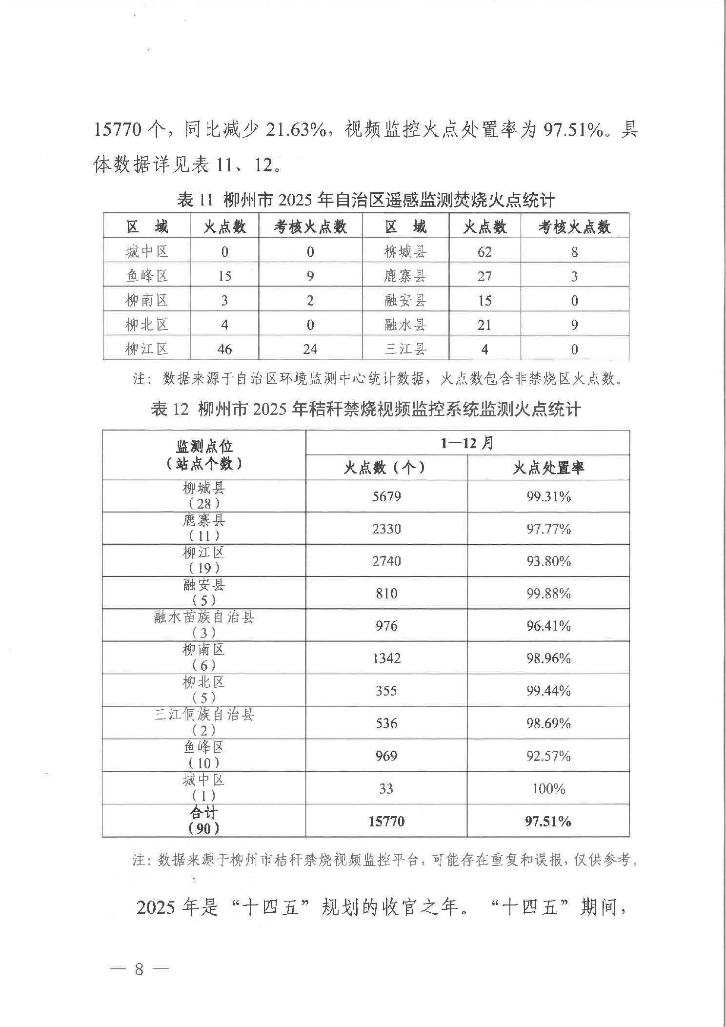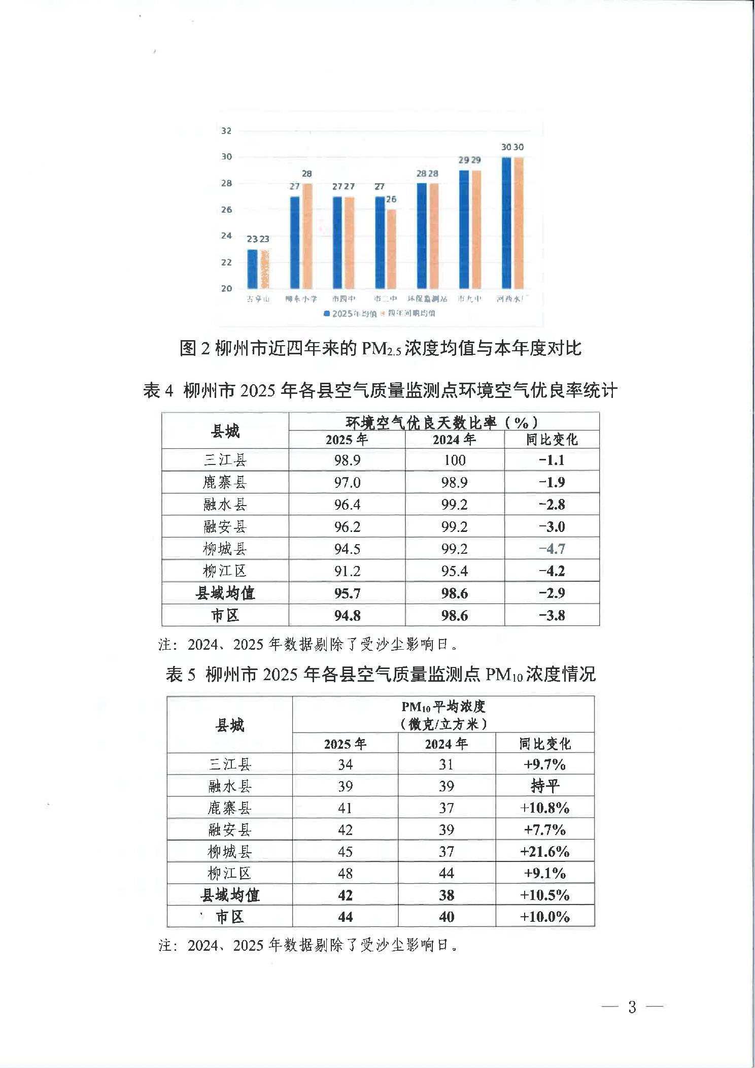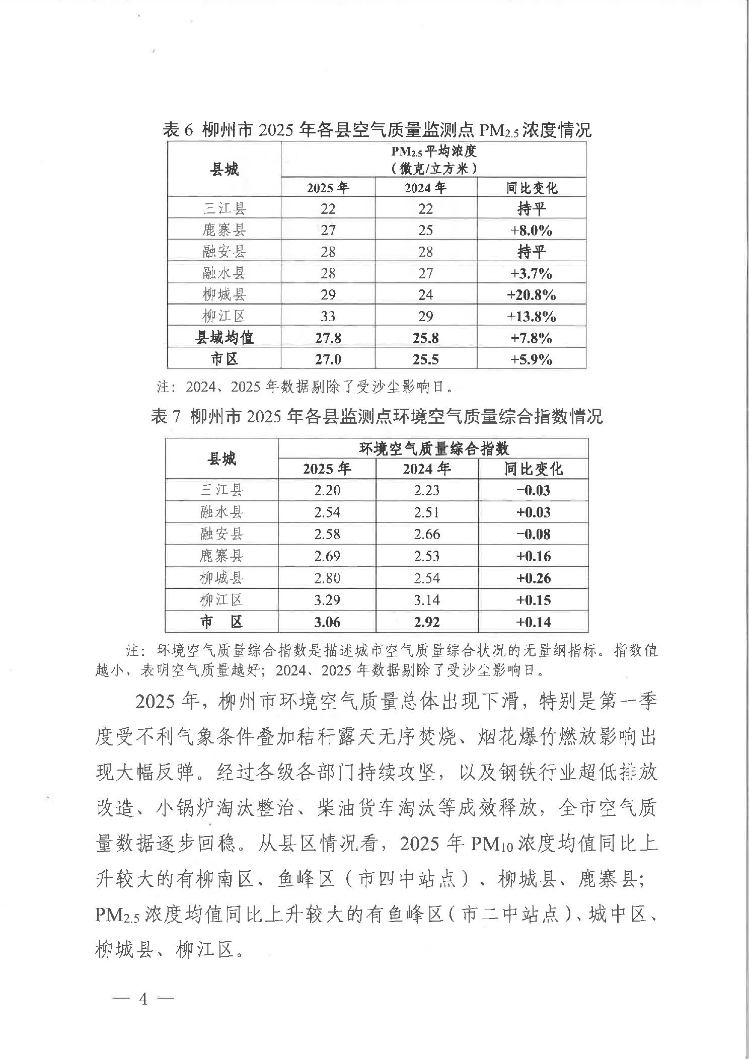 柳生态委办函〔2026〕4号柳州市生态环境保护委员会办公室关于通报柳州市2025年环境空气质量、声环境质量与监测焚烧火点情况的函