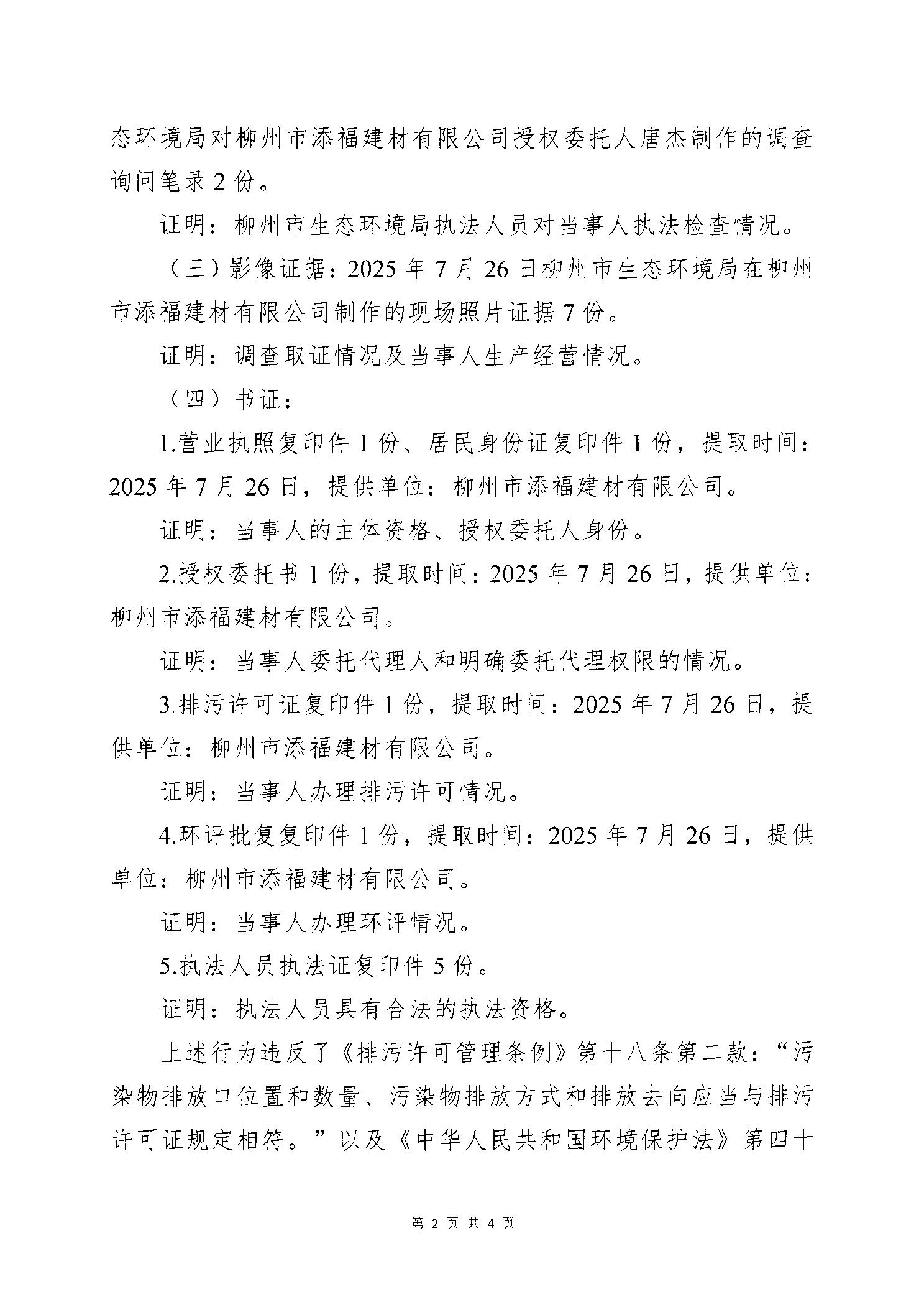 柳州市生态环境局责令改正违法行为决定书(柳江环责改字〔2025〕24号)柳州市添福建材有限公司