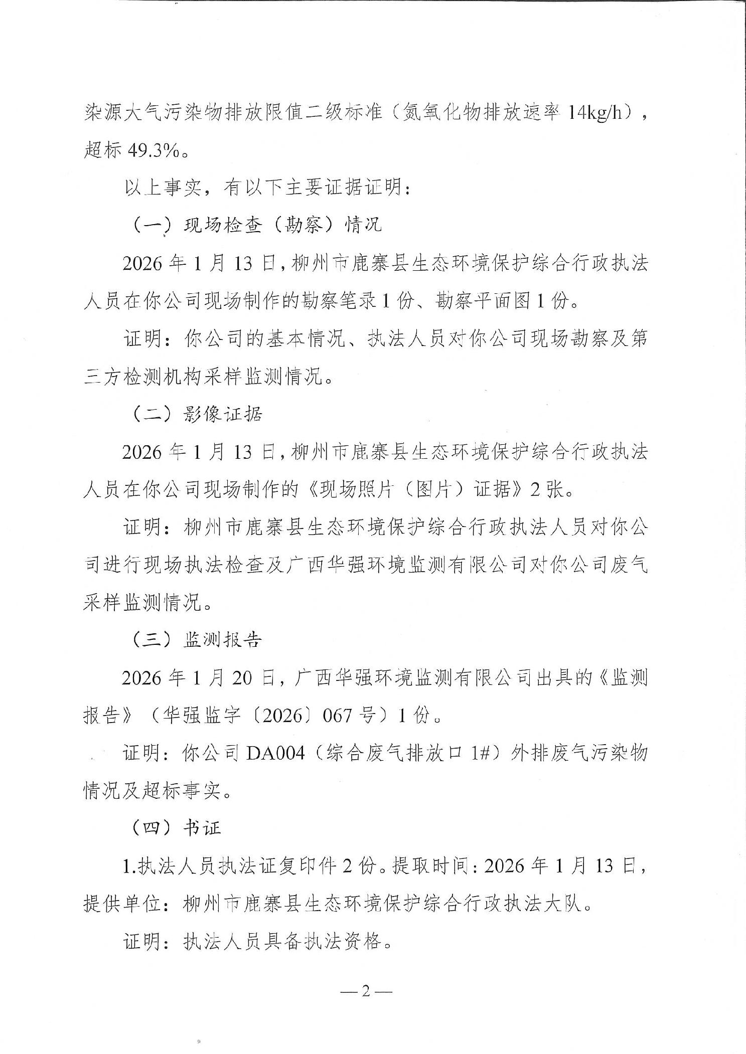 柳州市生态环境局责令改正违法行为决定书(柳鹿环责改字〔2026〕9号)广西一家美人造板有限公司
