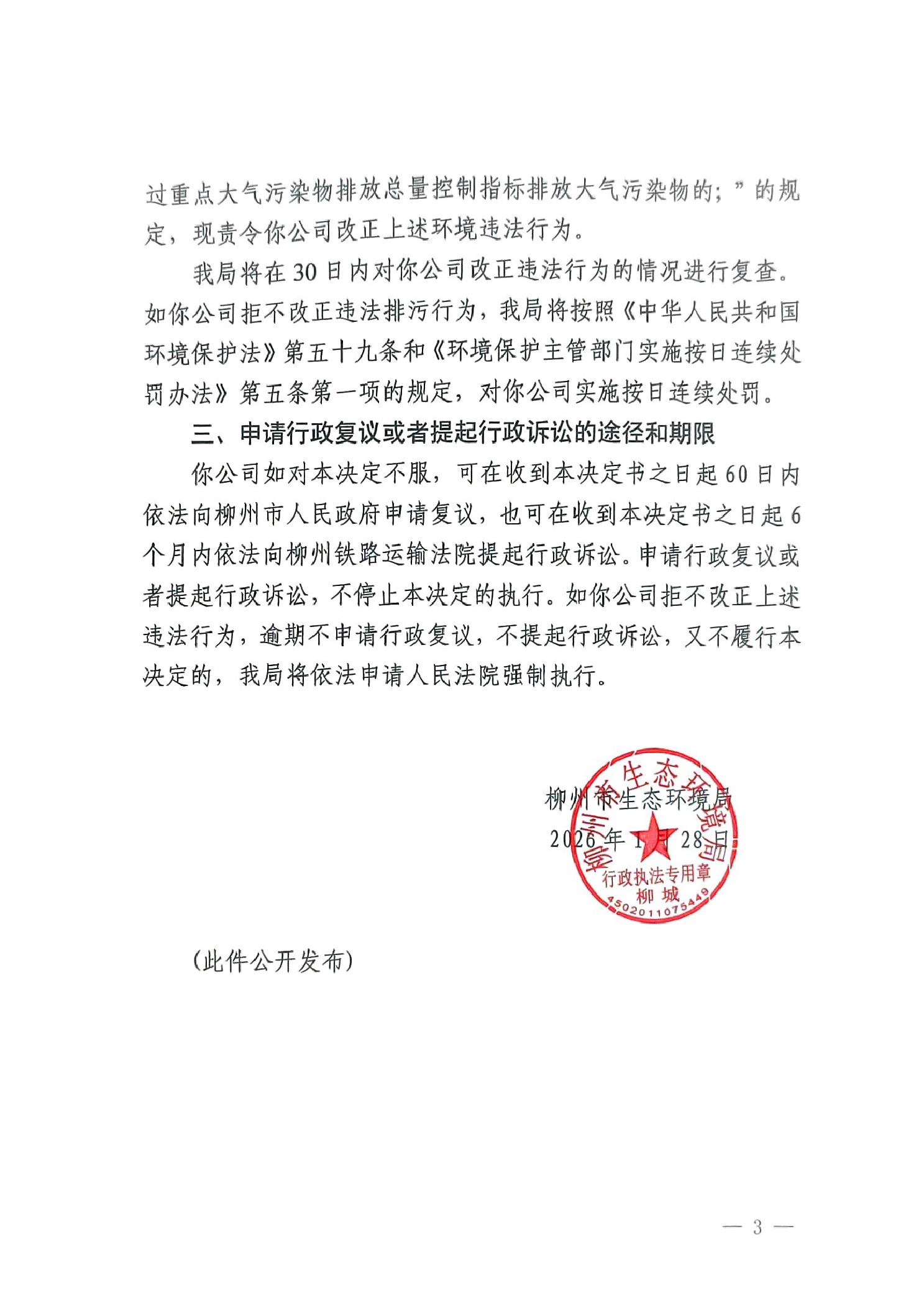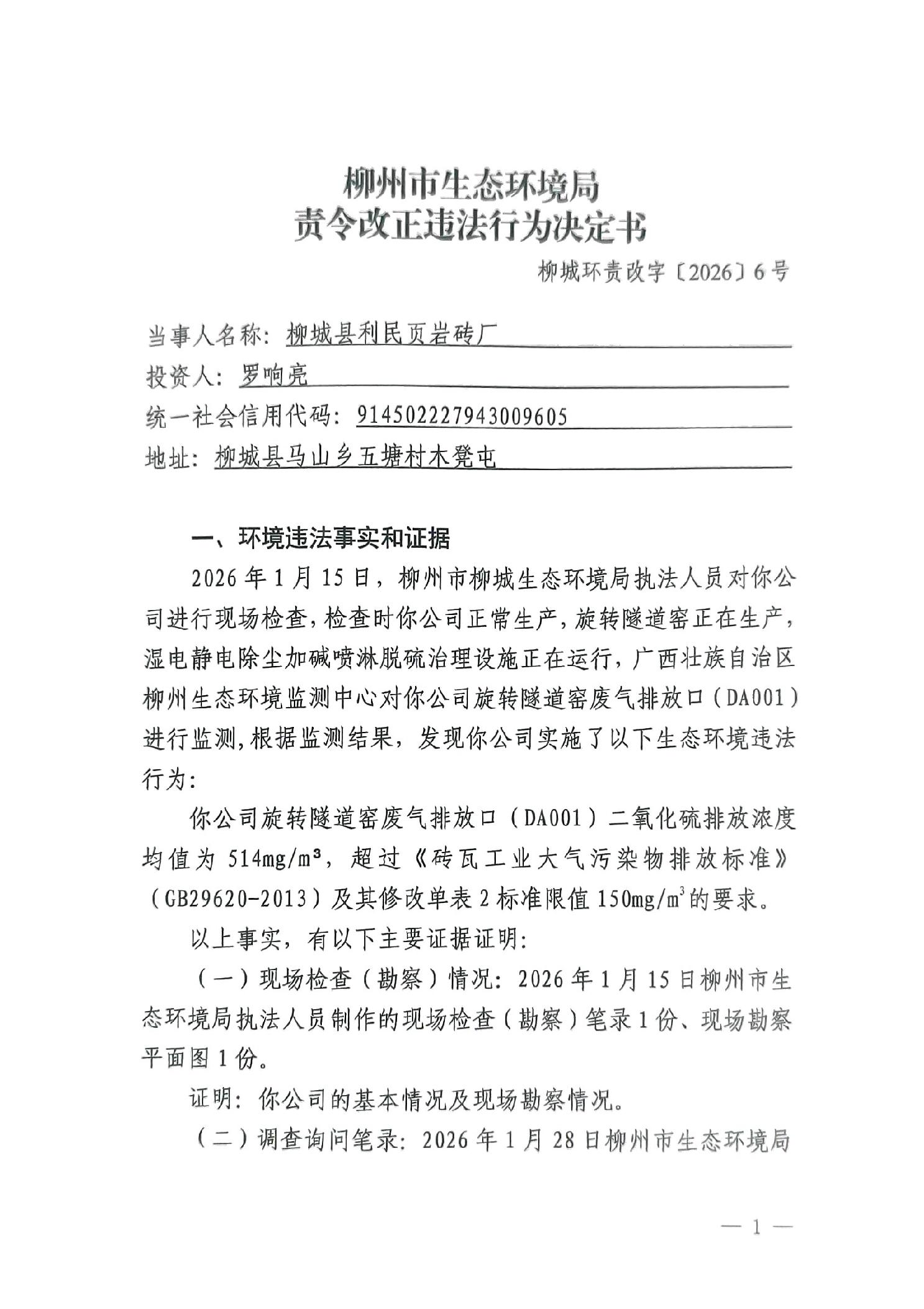 柳州市生态环境局责令改正违法行为决定书(柳城环责改字〔2026〕6号).pdf