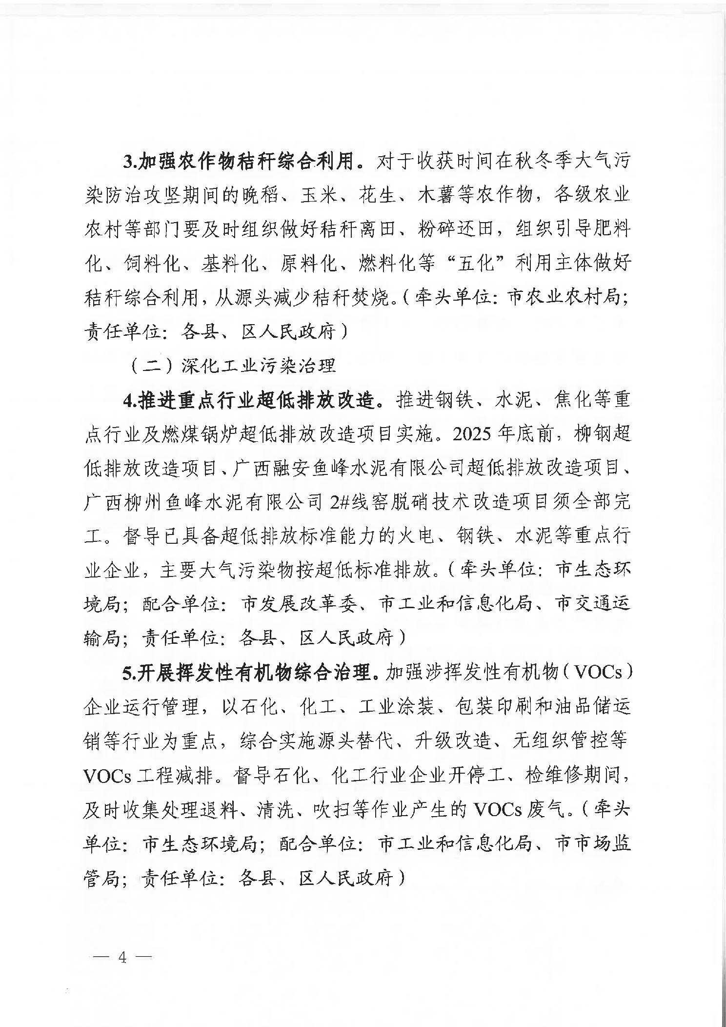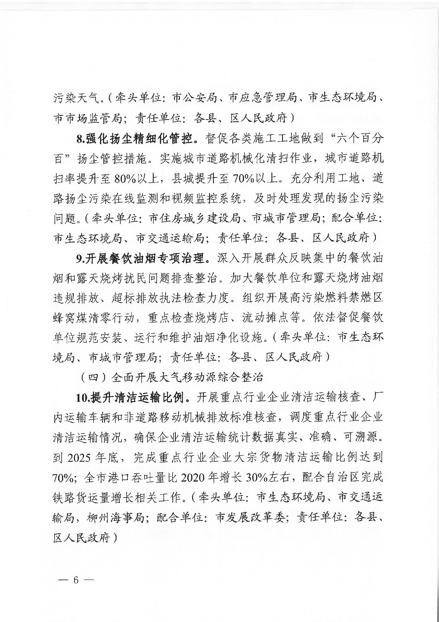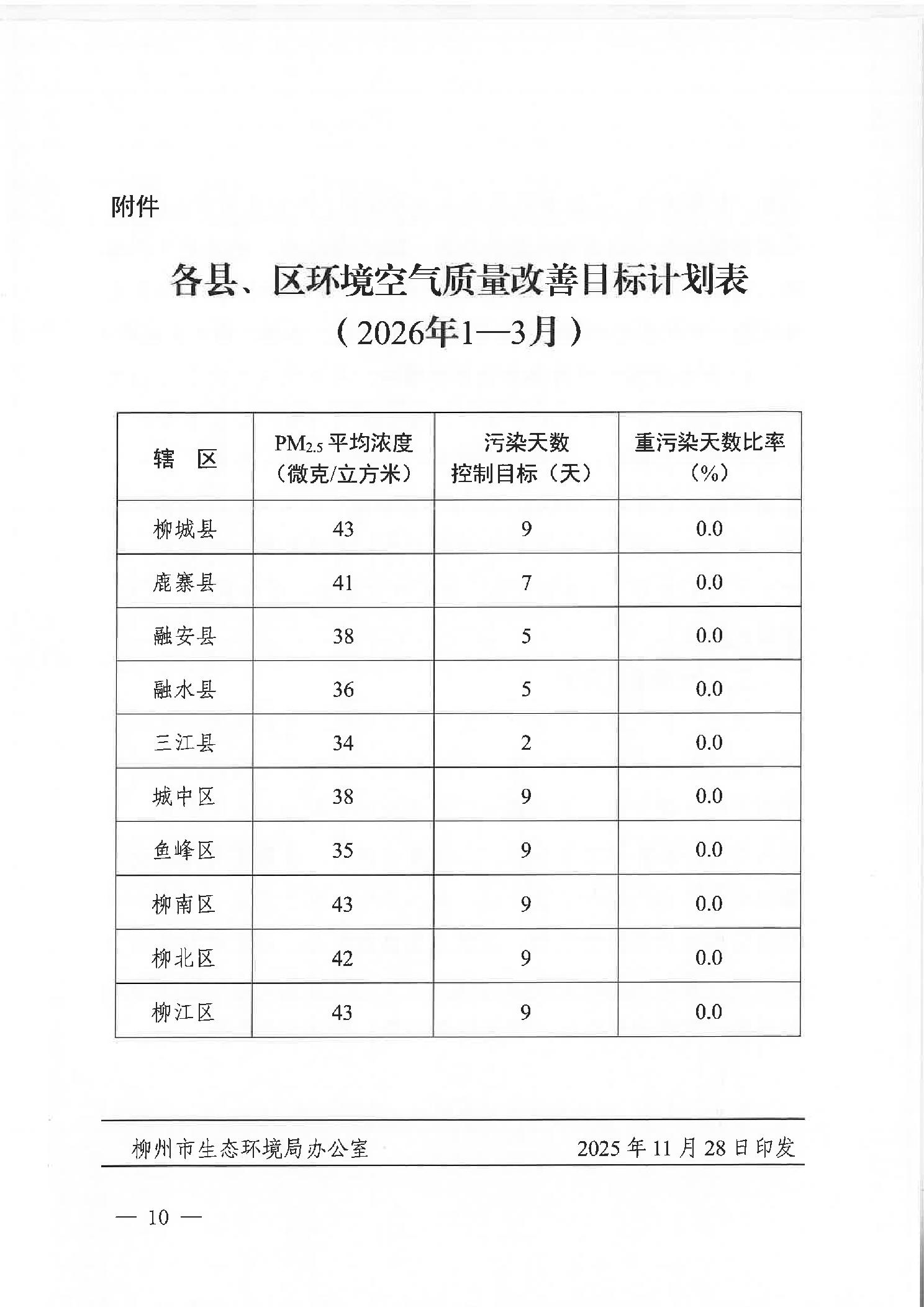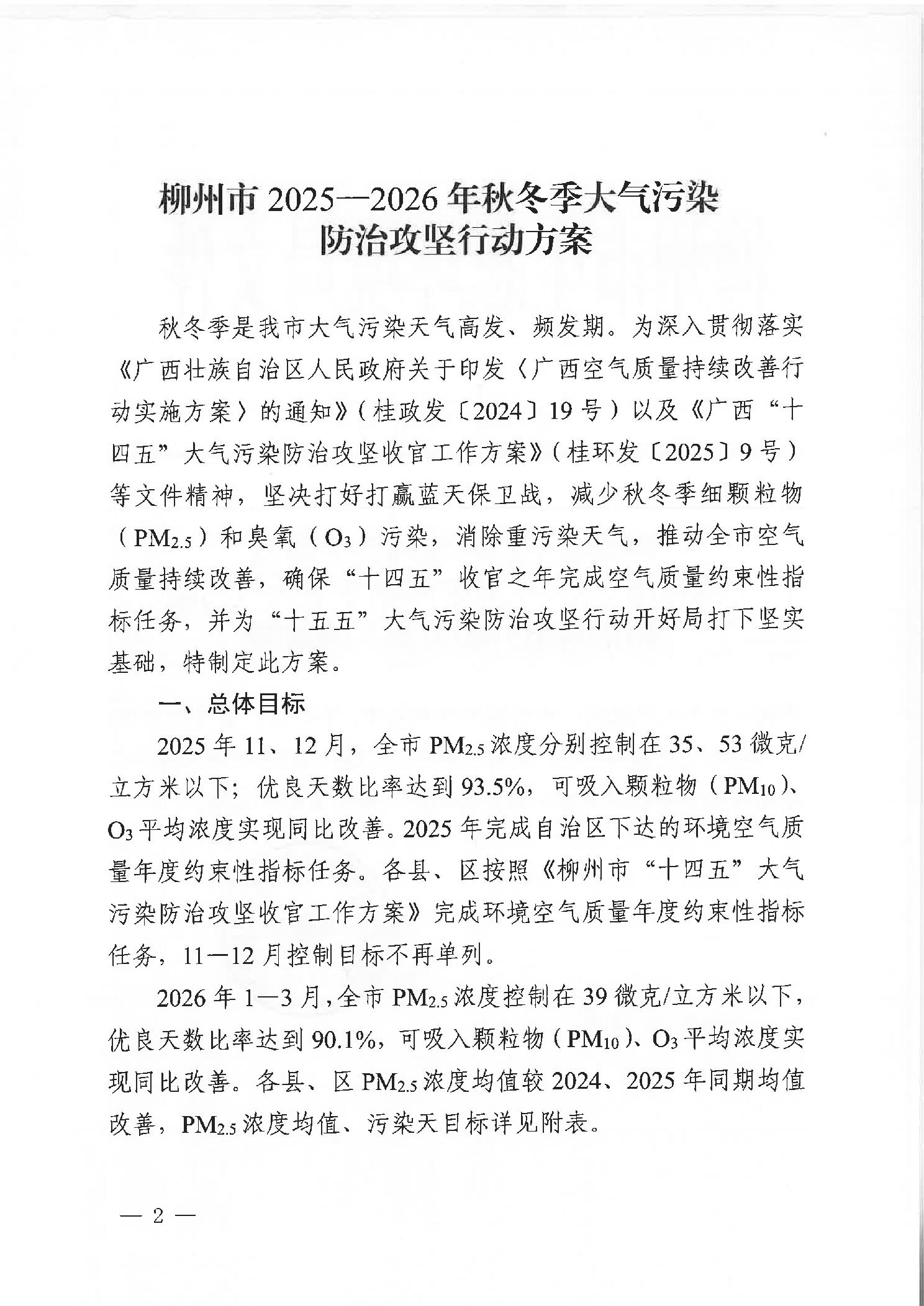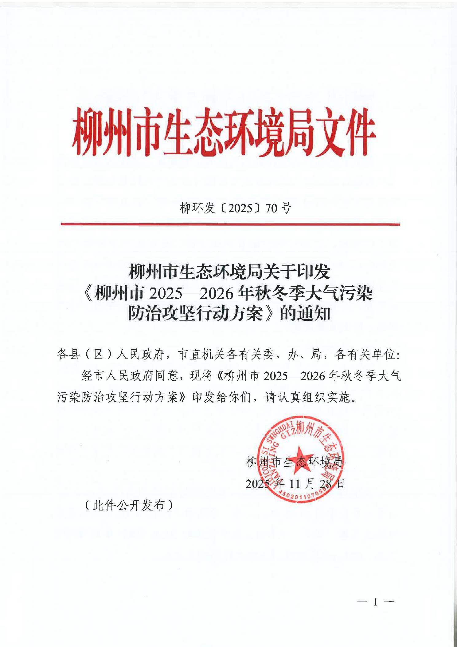柳环发〔2025〕70号柳州市生态环境局关于印发《柳州市2025—2026年秋冬季大气污染防治攻坚行动方案》的通知