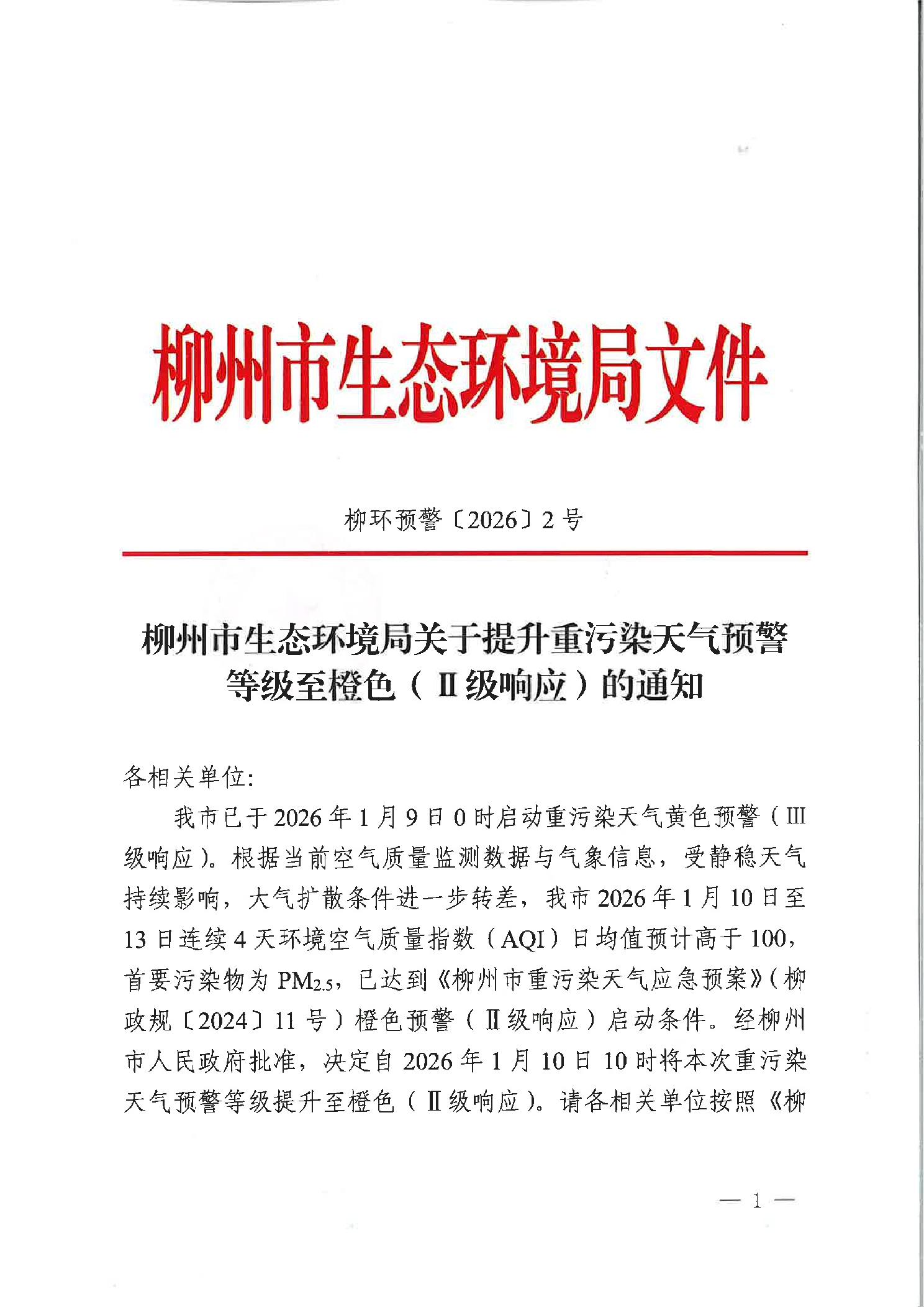 柳州市生态环境局关于提升重污染天气预警等级至橙色(Ⅱ级响应)的通知
