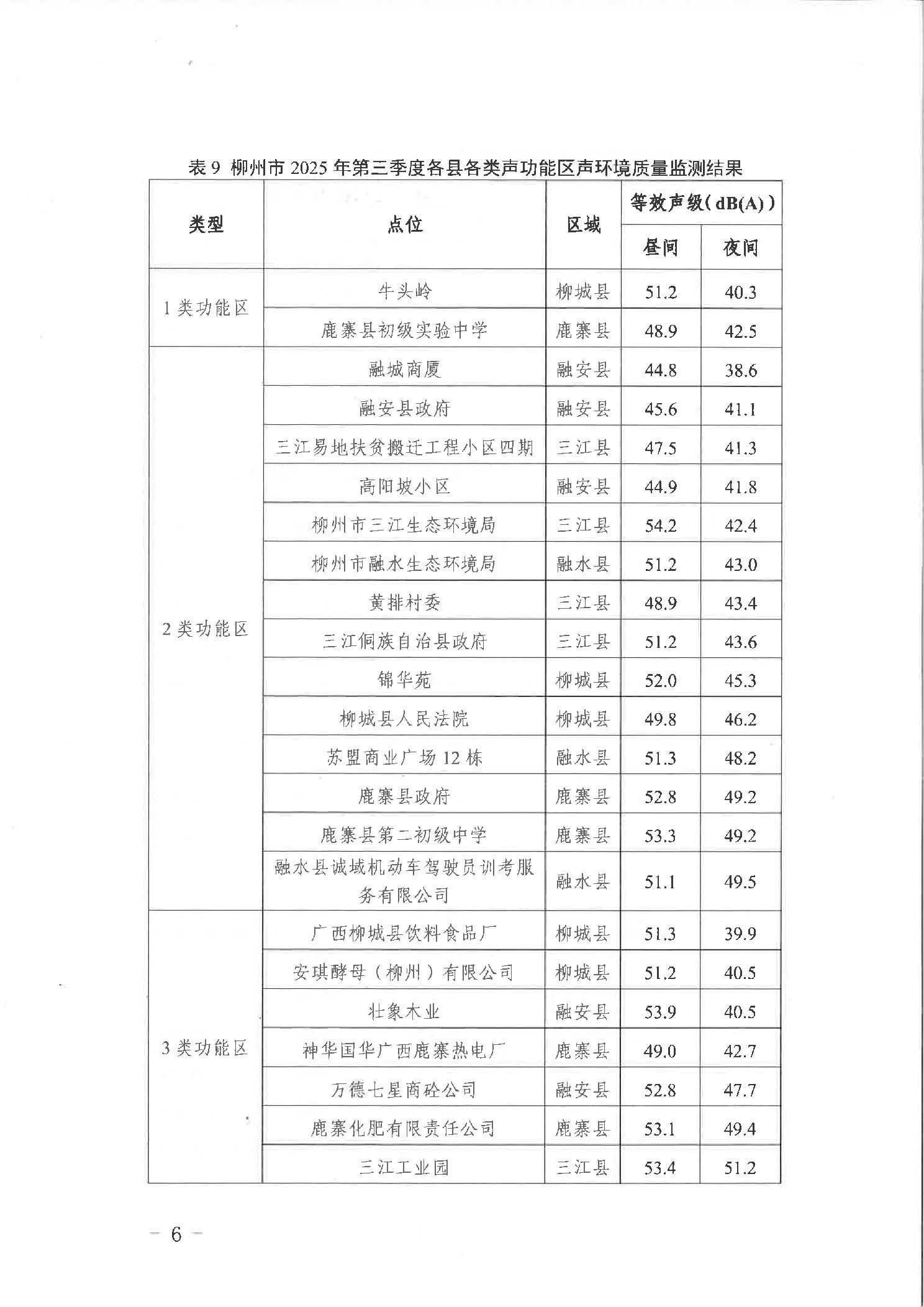 柳生态委办函〔2025〕56号柳州市生态环境保护委员会办公室关于通报柳州市2025年1—9月环境空气质量和功能区声环境质量情况的函