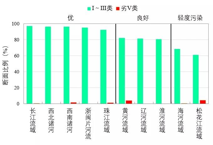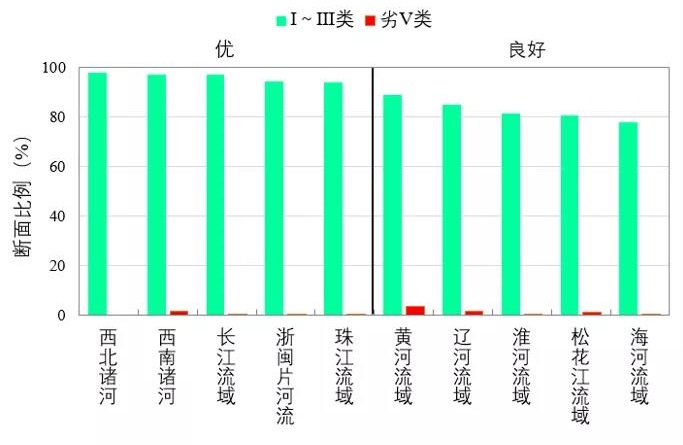 1-12月,长江、黄河、珠江、松花江、淮河、海河、辽河等七大流域及西北诸河、西南诸河和浙闽片河流水质优良(Ⅰ~Ⅲ类)断面比例为87.0%,同比上升2.1个百分点;劣Ⅴ类断面比例为0.9%,同比下降0.8个百分点。主要污染指标为化学需氧量、高锰酸盐指数和总磷。其中,长江流域、西北和西南诸河、浙闽片河流和珠江流域水质为优;黄河、辽河和淮河流域水质良好;松花江和海河流域为轻度污染。