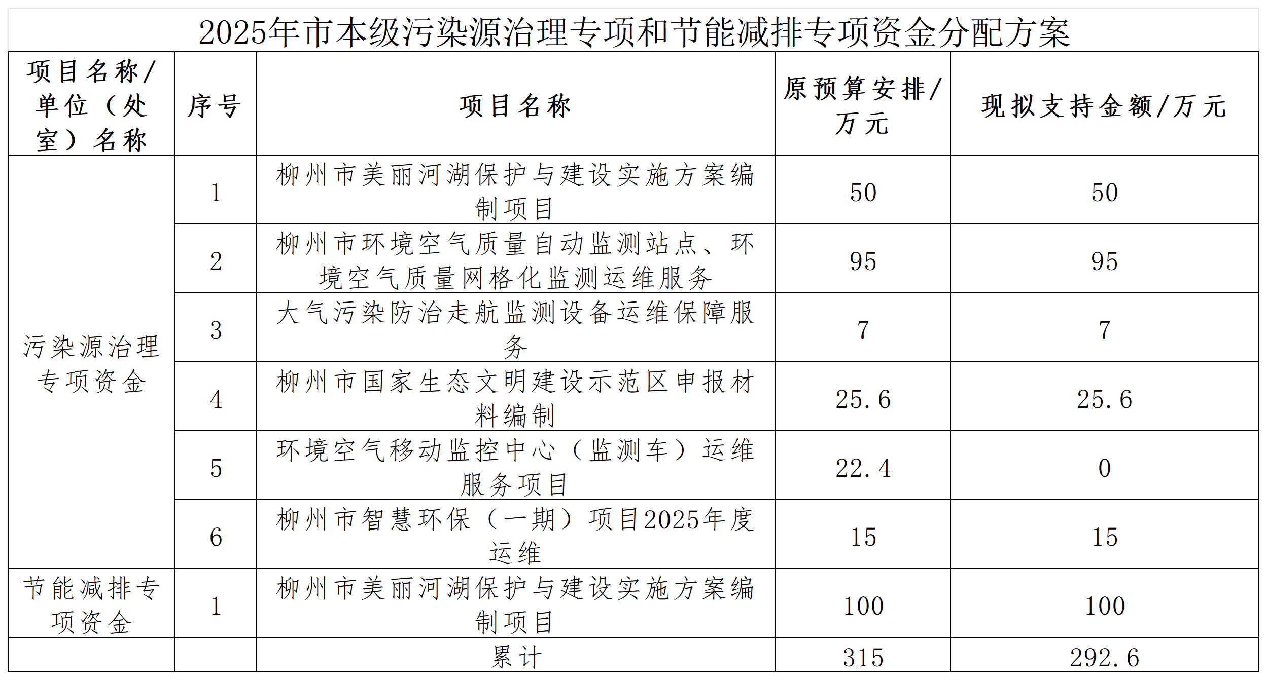 2025年市本级污染源治理专项和节能减排专项资金分配方案