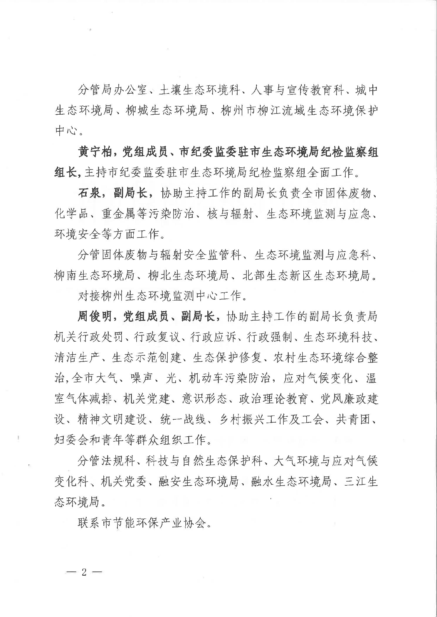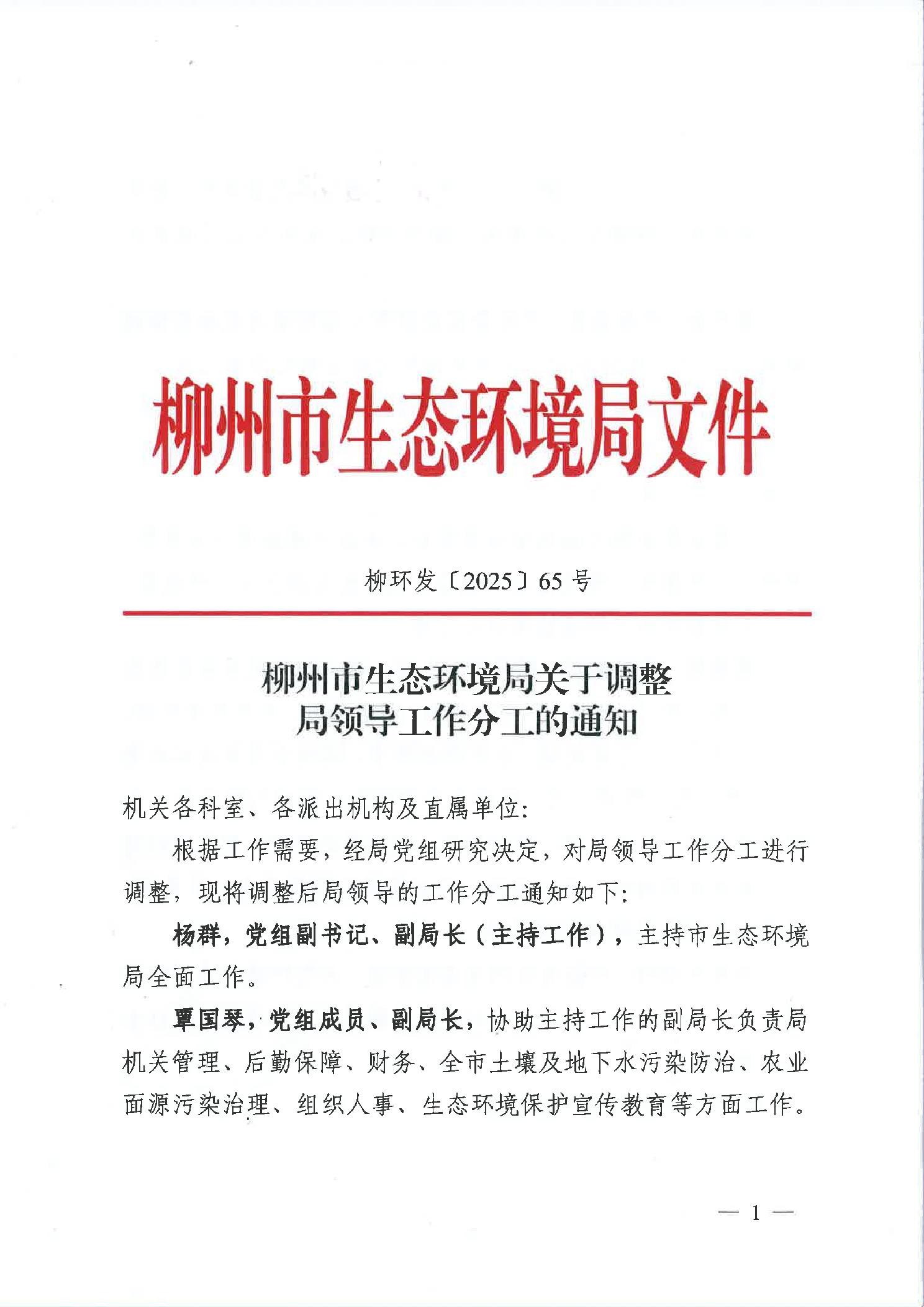 柳环发〔2025〕65号柳州市生态环境局关于调整局领导工作分工的通知