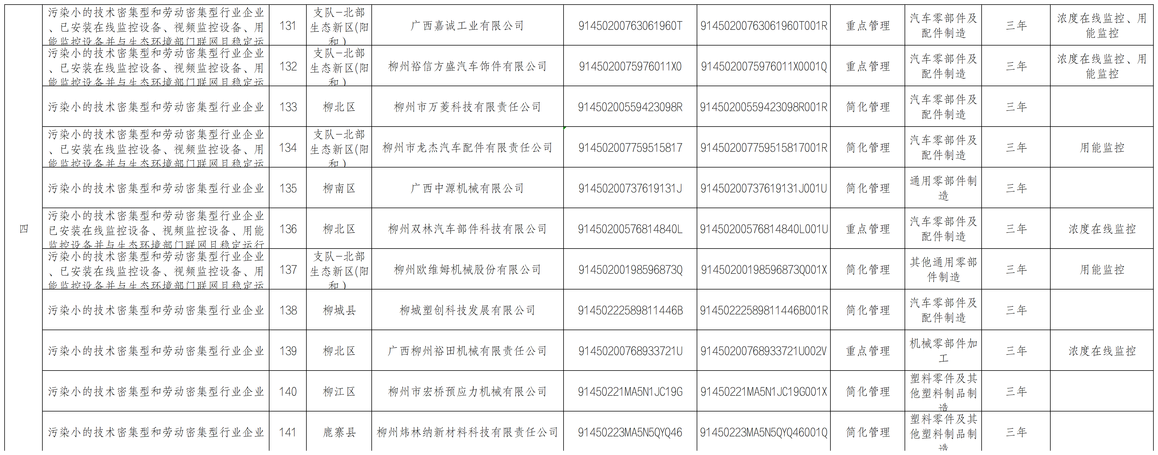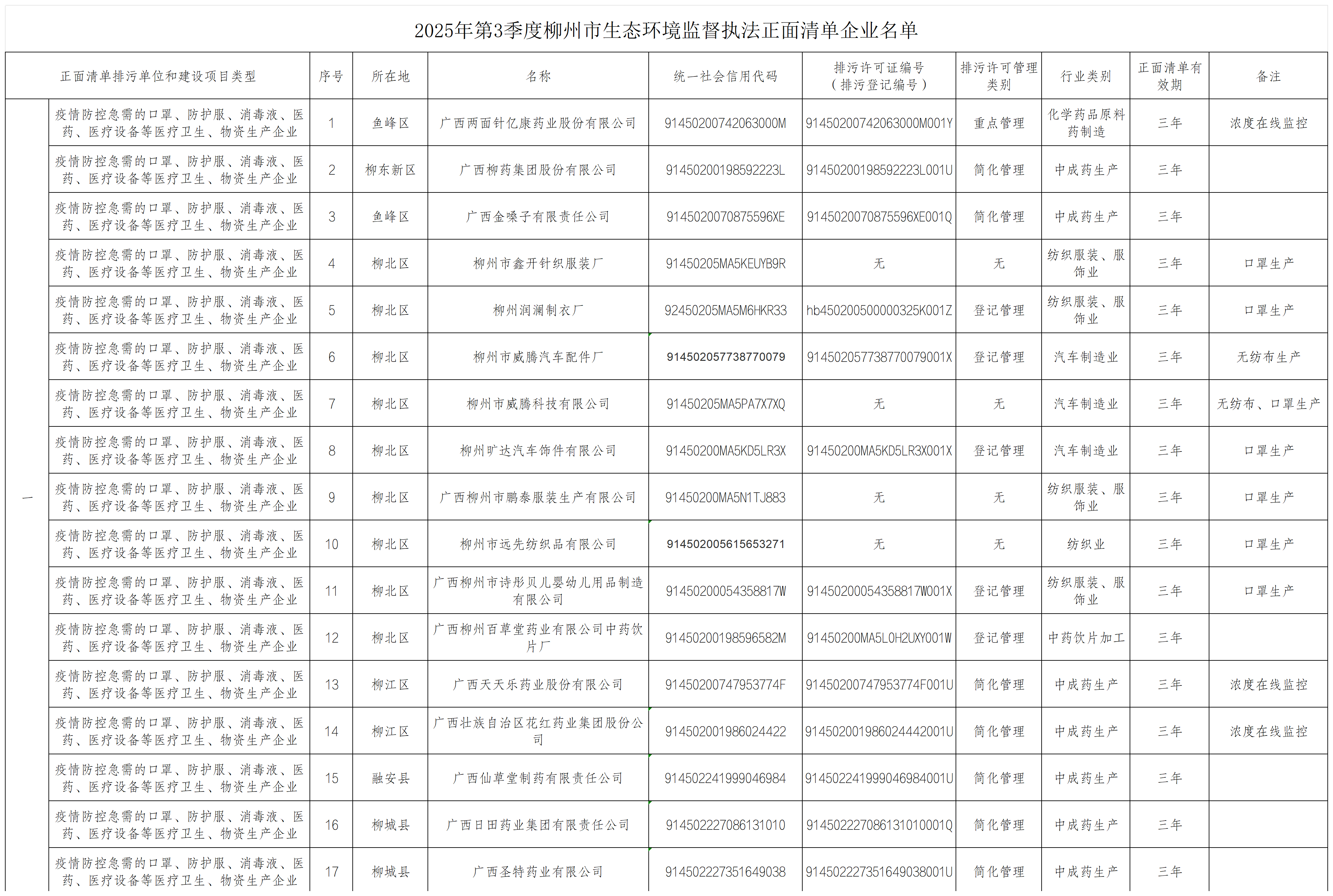 2025年第3季度柳州市生态环境监督执法正面清单企业名单